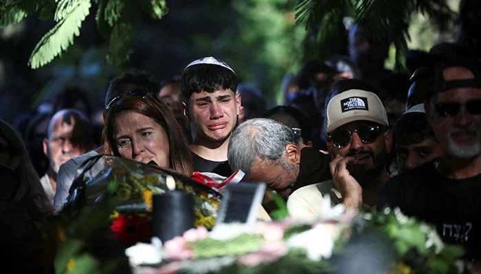 His mother Dalit spoke in her eulogy of the “divine bond” with her son, asking him to “forgive me for not being able to protect and keep you safe” during the ceremony, where mourners gathered around his casket draped in an Israeli flag.