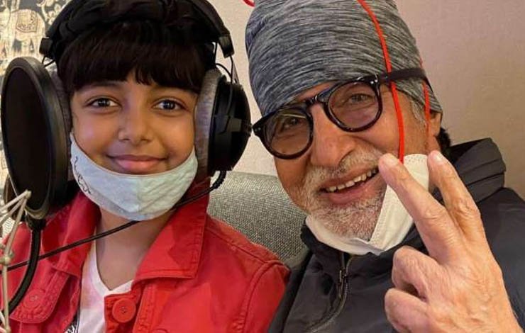 Amitabh Bachchan shared another photo from the recording studio and wrote, “When granddaughter and grandfather get in front of the mic in the studio and make music”.