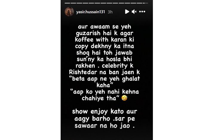 Actor-Screenwriter Yasir has always stayed in the limelight for all the wrong reasons and commenting catastrophically.
