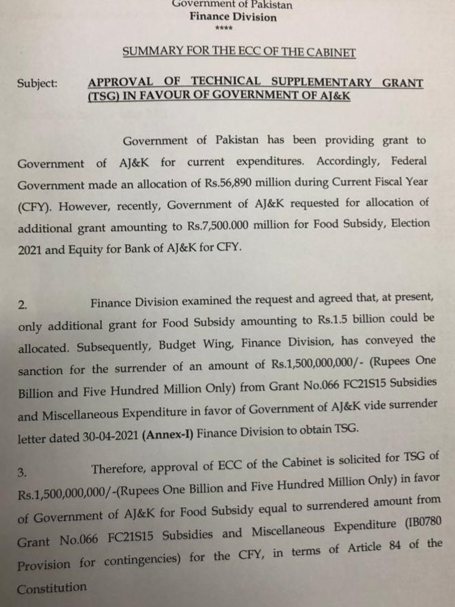 The supplementary grant was sought under subsidy, bank equity for AJK, and holding election, the available documents said.