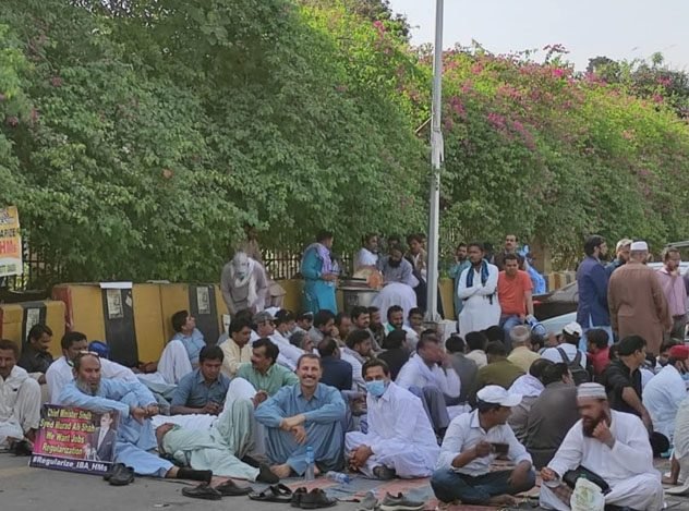 According to the protestors, they were recruited after clearing entrance exam conducted by the Institute of Business Administration (IBA) Sukkur.