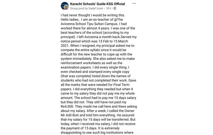 Ex-Teacher Notifies Amateur Attitude of ‘The Avicenna School’