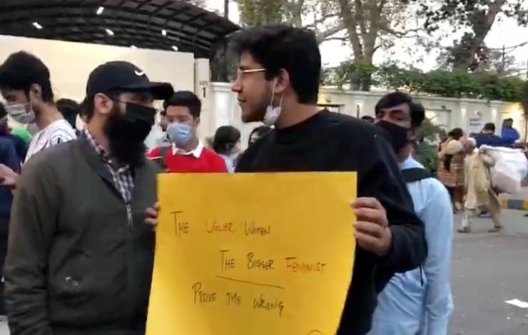 Since its inception, Aurat March in Pakistan has been subject to controversies for slogans deemed unacceptable to many. Ahmed Mujahid, who had reached Aurat March in Lahore, triggered a brawl for the slogan he had inscribed on a placard. It said, “The uglier women the bigger feminist.. Prove me wrong”.