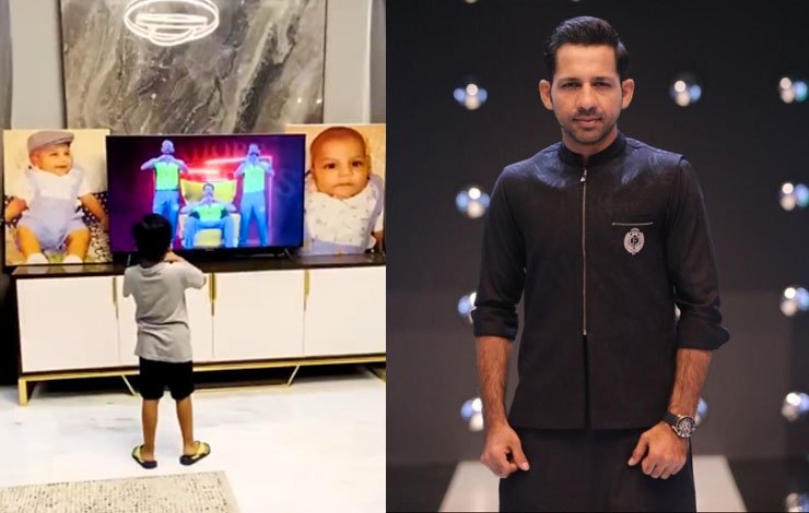 A video was shared on Twitter by Sarfaraz’s wife, Khushbakht Sarfaraz, in which her son was imitating dance moves of the team players of Lahore Qalandars.