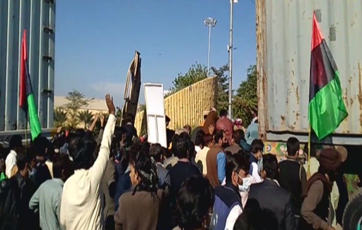 The city of shrines has been clustered with containers and trolleys in different areas leading to the protest spot including Ghar Chowk, Lohari Gate, Kutcheri Road, Hussain Agahi Road, Daulat Gate Road, Hazari Bagh Road, and Abdali Road.