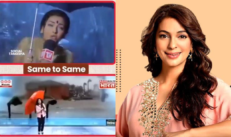 اداکارہ جوہی  چاؤلہ نے اپنی فلم ”پھر بھی دل ہے ہندوستانی “ کا ہوبہو ایسے ہی ایک منظر کے ساتھ رپورٹر کی وڈیو شیئر کی ہے جس میں جوہی چاؤلہ فلم میں مصنوعی طوفان کا وڈیوبیپر تیار کروارہی ہوتی ہیں۔