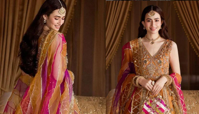 ان تصاویر میں ثناء جاوید نے دو مختلف لباس زیب تن کئے ہوئے ہیں۔ پہلی تصویر میں انہوں نے پیچ اور ہلکے سبز رنگ کا شرارہ جبکہ دوسری میں انہوں نے پیلا پشواس پہنا ہوا ہے جو کہ جامنی و گلابی امتزاج کے ساتھ ہے۔