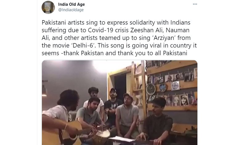 کرونا وبا کے باعث بدترین حالات کا شکار انڈین عوام سے اظہار یکجہتی کے لیے پاکستانی نوجوانوں نے گانا گاکر سوشل میڈیا پر انڈینز کا دل جیت لیا ہے۔