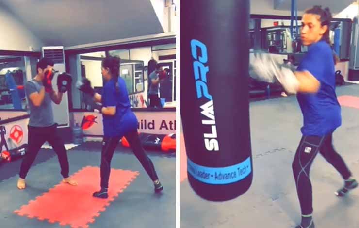 اداکارہ نے اپنے انسٹاگرام پیج ایک وڈیو شیئر کی ہے جس میں اداکارہ کو پنچنگ بیگ پر مکے اور لاتیں برساتے اور کوچ سے تربیت لیتے ہوئے دیکھاجاسکتا ہے۔