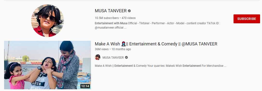 موسیٰ تنویر اپنی اداکاری اور ماڈلنگ کی صلاحیتوں کے ذریعے لاکھوں سوشل میڈیا صارفین کے دلوں پر حکمرانی کررہے ہیں۔حال ہی میں ان کے یوٹیوب چینل نے ایک کروڑ (10 ملین) سبسکرائبرز کا سنگ میل عبور کیا ہے اور جس کے بعد وہ یوٹیوب کی جانب سے ڈائمنڈ بٹن حاصل کرنے والے پہلے پاکستانی یوٹیوبر بن گئے ہیں ۔یاد رہے کہ ڈائمنڈ بٹن ایک کروڑ سبسکرائبر مکمل کرنے والے یوٹیوب صارفین کو دیا جاتا ہے۔