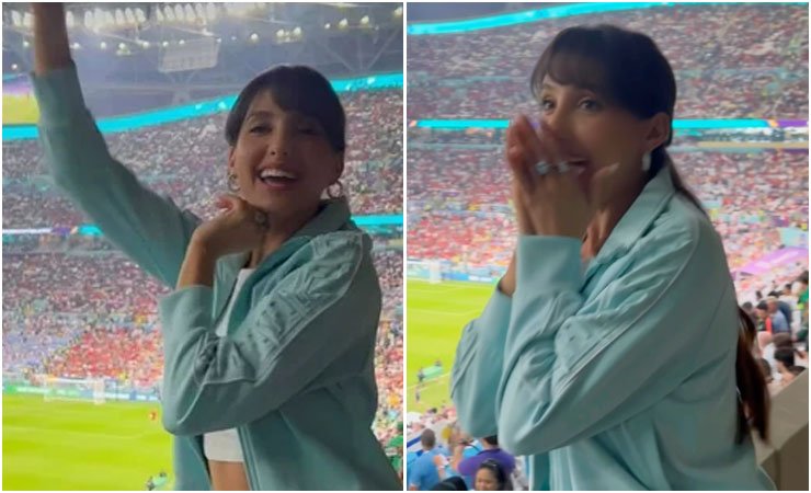 قطر میں جاری فیفا ورلڈکپ 2022 کے آفیشل نغمے میں اپنی آواز اور رقص کا جادو جگانے والی مراکشی نژاد بالی ووڈ اداکارہ نورا فتحی اسٹیڈیم میں اپنا گانا سن کر خوشی سے پھولی نہیں سمائیں اور دیوانہ وار رقص شروع کردیا۔