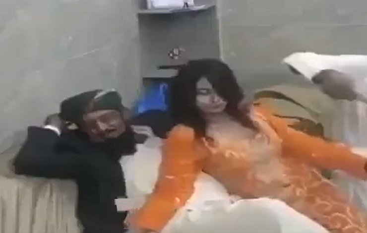 مولانا جیسے دکھنے والا شخص جوکہ ایک صوفہ پر براجمان ہے اس پر مذکورہ رقاصہ نے ناچتے ہوئے اس کے ساتھ بیٹھ گئی اور وہ بھی ان سے خوش دکھائی دیا ۔
