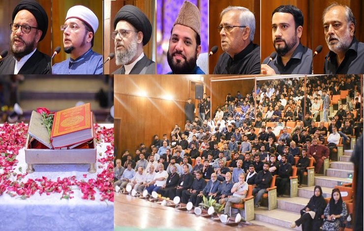 فلسفہ قرآن پر روشنی ڈالتے ہوئے کلیدی مقرر ڈاکٹر ذکی باقری کا کہنا تھا کہ کٹے ہوئے سر امام حسینؑ کا قرآن کی تلاوت کرنا ثابت کرتا ہے کہ قرآن و اہل بیت جدا جدا نہیں ہیں۔