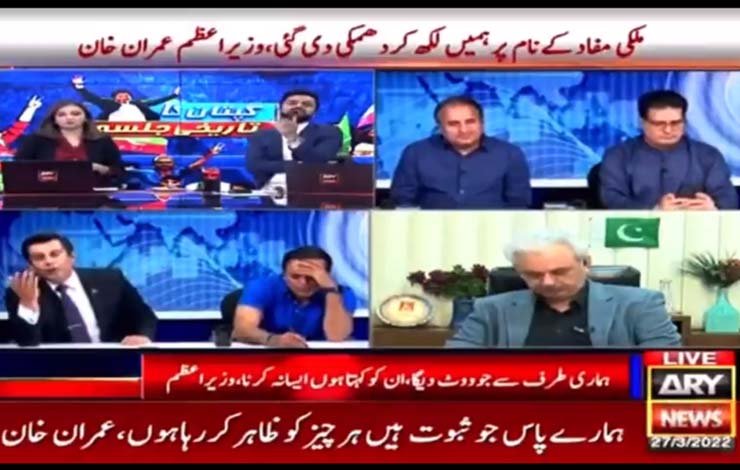Arshad sharif was making a great point to explain the conspiracy being unveiled by Imran khan .. until Mr. Waseem Badami decided he prefer rubbish over actual facts pic.twitter.com/ml8tuxs21u