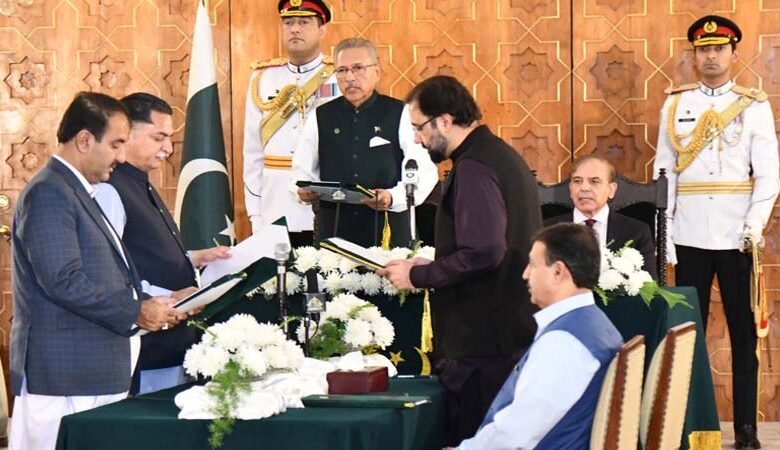 حلف برداری کی تقریب ایوان صدر میں ہوئی، حلف اٹھانے والے وفاقی وزرا میں مسلم لیگ (ن) کے جاوید لطیف، مسلم لیگ (ق) کے سالک چوہدری اور بلوچستان نیشنل پارٹی (مینگل) کے آغا حسن بلوچ شامل ہیں۔
