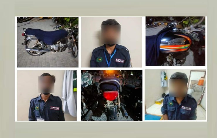 صدر پولیس کی کامیاب کارروائی، جناح اسپتال کے تین سیکورٹی گارڈز گرفتار، 4 موٹر سائیکلیں برآمد