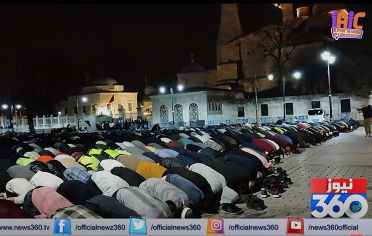 سیاحت کے حوالے سے ترکی کے دارالحکومت استنبول کی سب سے مشہور جگہ سلطان احمد ، رمضان المبارک کی مناسبت سے سلطان احمد کی تاریخی مسجد آیا صوفیہ کے لیے ہفتے کی رات ایک بھی تاریخی رات تھی ، کیونکہ 88 سال کے طویل عرصے کے بعد یہاں نماز تراویح ادا کی گئیں۔