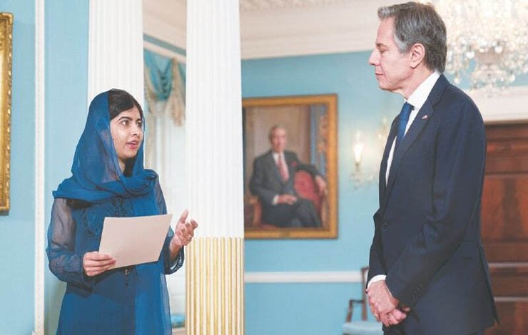 نوبل انعام یافتہ ملالہ یوسفزئی نے امریکی سیکرٹری خارجہ انٹنونی بلنکن سے ملاقات کی، یہ ملاقات امریکی محکمہ خارجہ کے دفتر میں ہوئی۔