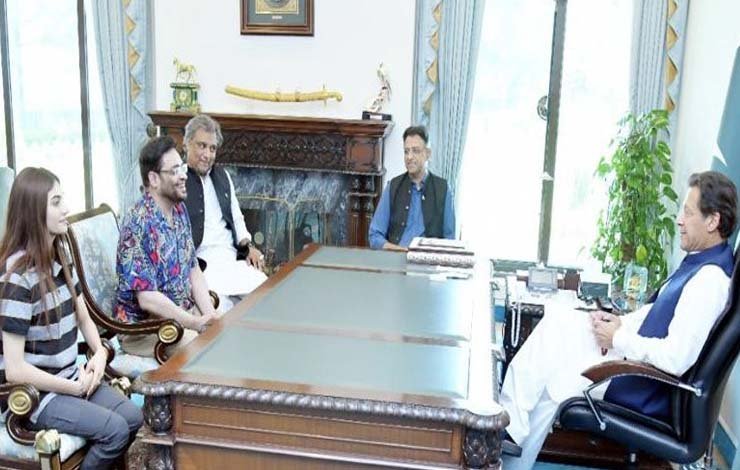 تصویر میں وفاقی وزرا علی زیدی اور اسد عمر بھی موجود ہیں۔ کچھ ہفتے پہلے تک اطلاعات تھیں کہ عامر لیاقت کی وزیراعظم سے ناراضگی ہوگئی ہے۔