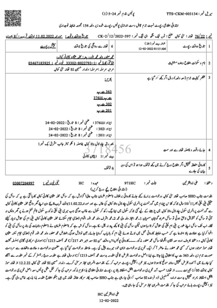 دوران تفتیش ملزم غفار نے اپنے بیان میں کہا کہ بچی سے زیادتی کے بعد اسے قتل کرکے لاش دریا میں بہادی تھی۔ پولیس نے تفتیش کے بعد ملزم غفار چوکیدار کو جوڈیشل ریمانڈ پر جیل بھیج دیا۔