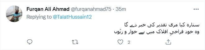 ٹوئٹر صارفین نے بھی طلعت حسین کی اس پوسٹ کو کچھ زیادہ پسند نہیں کیا اور ان سے مختلف سوال کیے۔