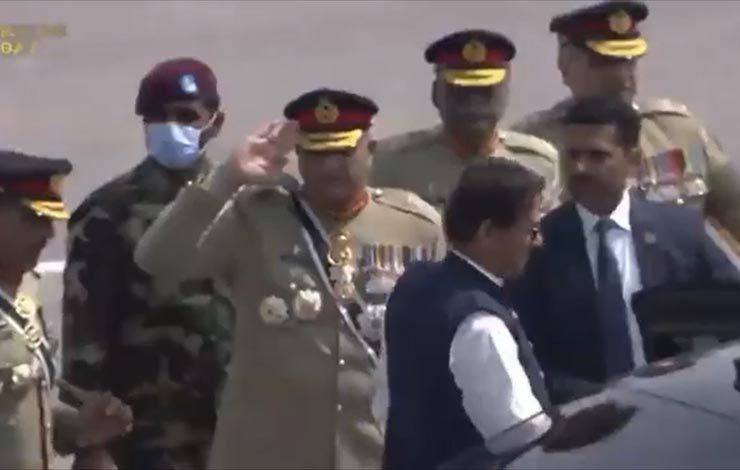 جیو نیوز کے رپورٹر اعزاز سید نے وزیراعظم کی پریڈ وینیومیں آمد کی وڈیو ٹوئٹ کرتے ہوئے لکھا کہ  وزیراعظم عمران خان 23 مارچ کی تقریب میں سلامی کے چبوترے پر آئے مگر آرمی چیف جنرل باجوہ سے نہ ملے۔ سروسز چیفس نے سیلوٹ بھی نہ کیا بعدازاں عمران خان صدر مملکت اور چیرمین جوائنٹ چیفس سے باتیں کرتے رہے جبکہ وزیر دفاع پرویز خٹک جنرل باجوہ کیساتھ محو گفتگو رہے۔