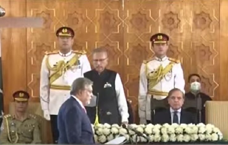صدر مملکت عارف علوی نے ملزم وزیراعظم سے حلف نہیں لیا تھا جبکہ اشتہاری اسحاق ڈار سے وزیر خزانہ کا حلف لے لیا ہے۔ حلف برداری کی تقریب سے وزیراعظم شہباز شریف نے صدر مملکت ڈاکٹر عارف سے 20 منٹ تک الگ سے ملاقات کی تھی۔