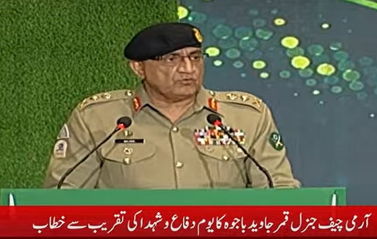جی ایچ کیو راولپنڈی میں یوم دفاع و شہداء کی تقریب سے خطاب کرتے ہوئے آرمی چیف جنرل قمر جاوید باجوہ کا کہنا تھا آرمی کمانڈ کی چھ سالہ مدت میں ہزاروں شہداء کے گھروں پر تعزیت کے لیے گیا ، آفرین ہے شہداء کے لواحقین کو ، ان کے حوصلوں کو ہمیشہ بلند پایا ، جس نے میرے حوصلے کو بھی تقویت بخشی ۔ میں آپ سب کو یقین دلاتا ہوں کہ ہم سب آپ کی قربانیوں کا صلہ تو نہیں دے سکتے لیکن آپ کے پیاروں کی قربانیاں رائیگاں نہیں جائیں گی۔ اور آپ کی ہر طرح سے مدد کریں گے۔