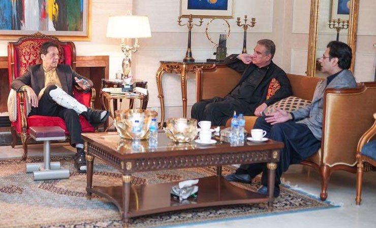 Senior PTI leadership @SMQureshiPTI , @Asad_Umar , @PervezKhattakPK with @MoonisElahi6 called on Chairman PTI @ImranKhanPTI pic.twitter.com/AN3wla8P0D
