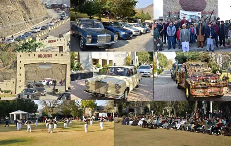 مچنی پوسٹ پر کاروں کی نمائش کے بعد ریلی خیبر رائفلز آفیسرز میس پہنچی جہاں پر شرکاء نے روایتی خٹک، محسود، چترالی اور دیگر مقامی رقص کا مظاہرہ دیکھا۔
