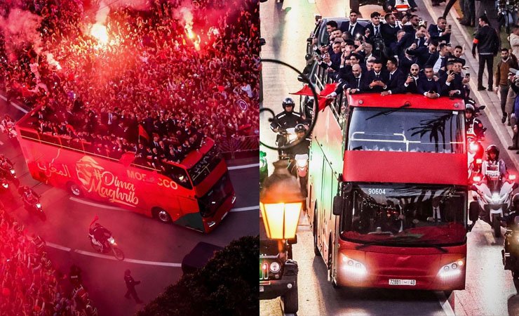 مراکش کی فٹبال ٹیم کا فیفاورلڈکپ کے سیمی فائنل میں رسائی پانے والی پہلی افریقی عرب ٹیم بننے کا اعزاز حاصل کرنے کے بعد وطن واپس پہنچی تو مراکش کی حکومت اور عوام نے ان کا فقید المثال استقبال کیااورلاکھوں افراد سڑکوں پر نکل آئے ۔