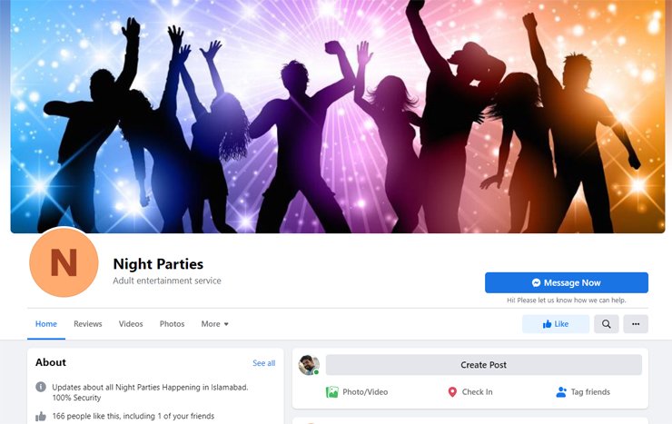 ‘نائٹ پارٹیز’ کے نام سے ایک "فیس بک پیج” پر اسلام آباد میں 15 جنوری کو منعقد ہونے والی ‘ون نائٹ ڈانس پارٹی’ کے پروگرام کا انکشاف کیا گیا تاہم ابھی تک جگہ کو عوام سے خفیہ رکھا گیا ہے۔