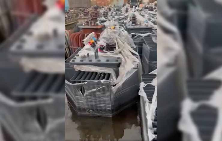 نوابشاہ میں حیسکو دفتر کے احاطے میں پڑے سیکڑوں ٹرانسفارمرز پانی میں ڈوب گئے،خراب ہونے کا خدشہ